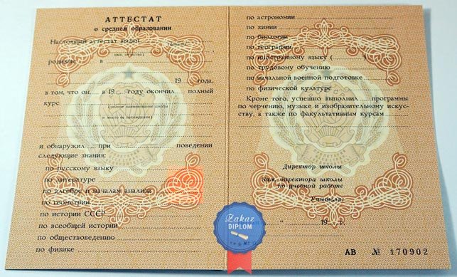 Аттестат о среднем (полном) образовании СССР