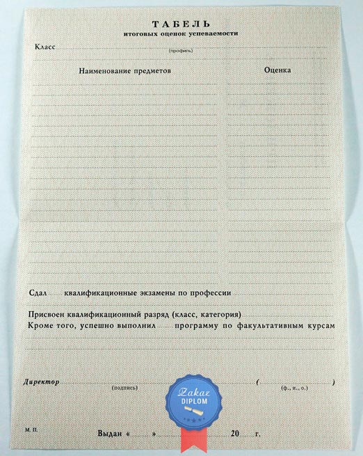 Аттестат о среднем образовании за 9 класс